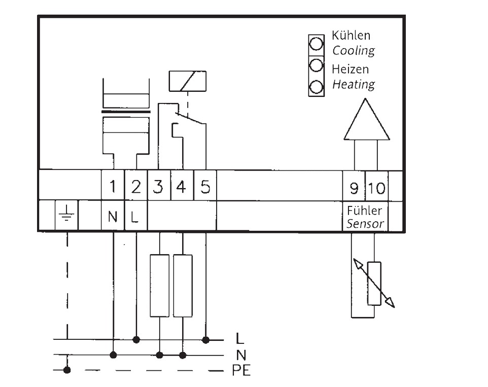 A falra szerelhető, távérzékelővel ellátott hőmérséklet-szabályozó (nem része a szállítási terjedelemnek, külön kell megrendelni) különösen alkalmas kültéri vagy nedves helyiségekben való használatra. Állítható kapcsolási hőmérséklet-különbség +/-0,1...+/-2,5 K.