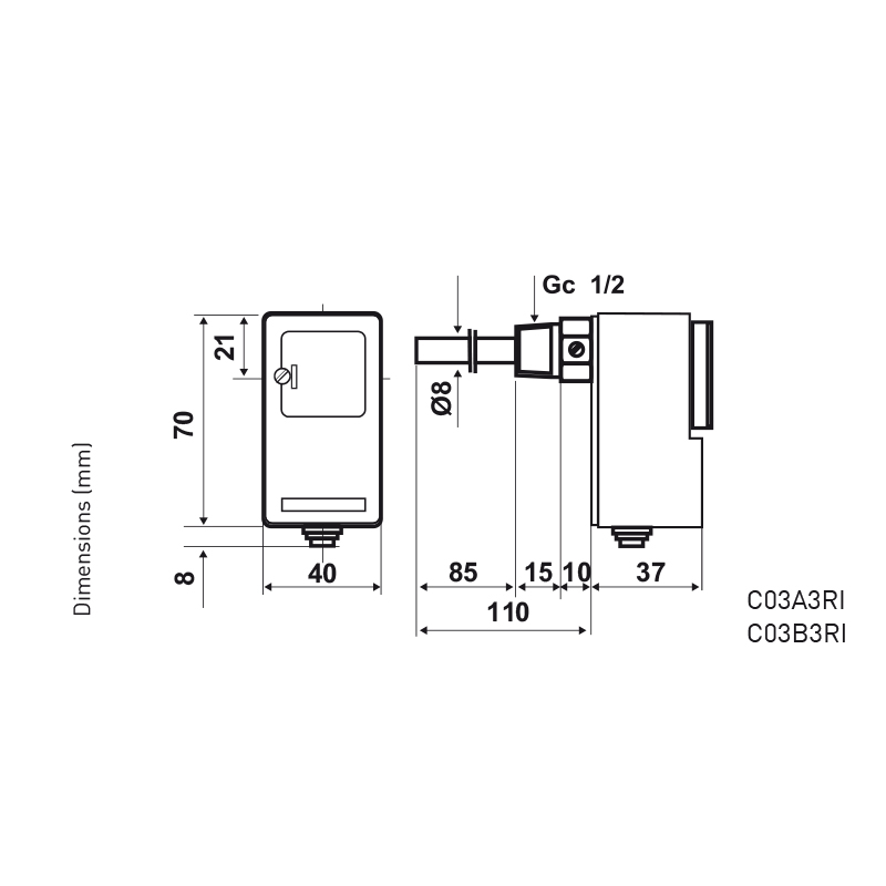 C03A3RI * | belső | 10 ÷ 90 °C | 6 ± 1 k | 85 °C | 150 °C