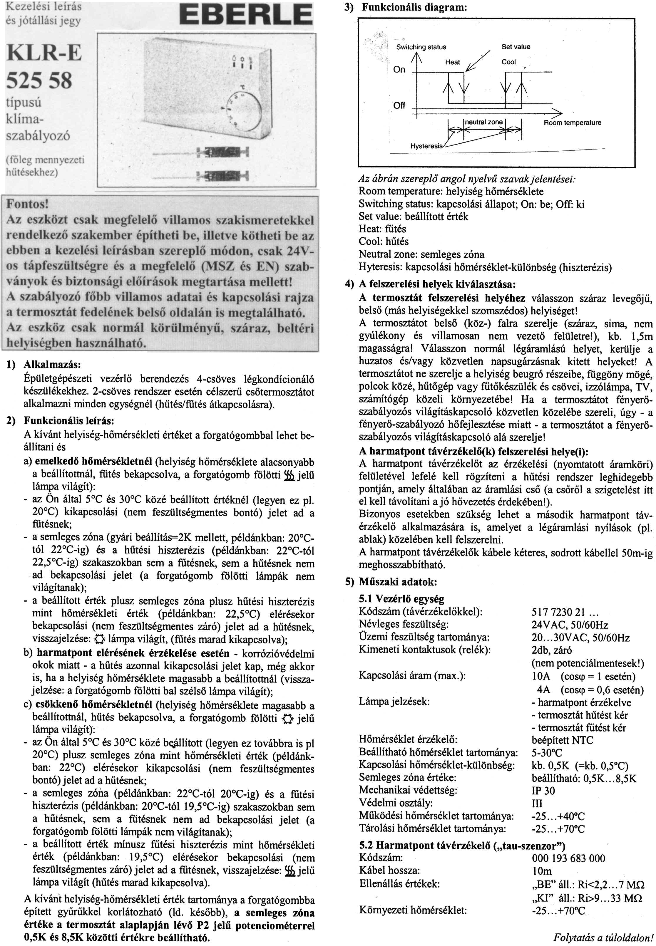EBERLE KLR-E52258 klímaszabályozó mennyezetek szabályozására